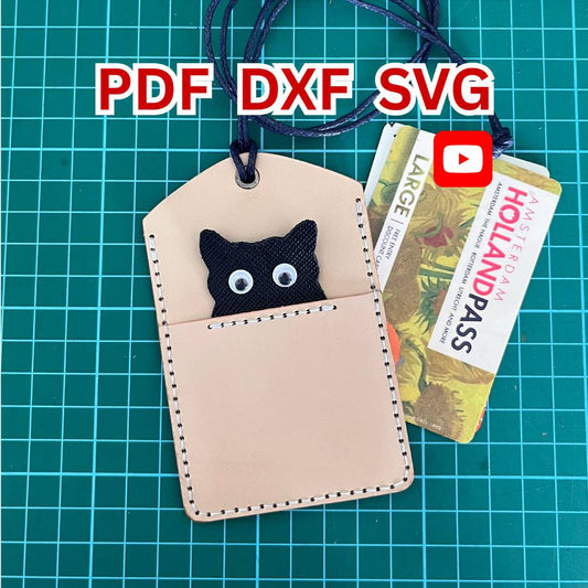 Easy Leather Cat Card Holder Pattern, Vertical Leather Wallet Template | DIY Animal Card Sleeve