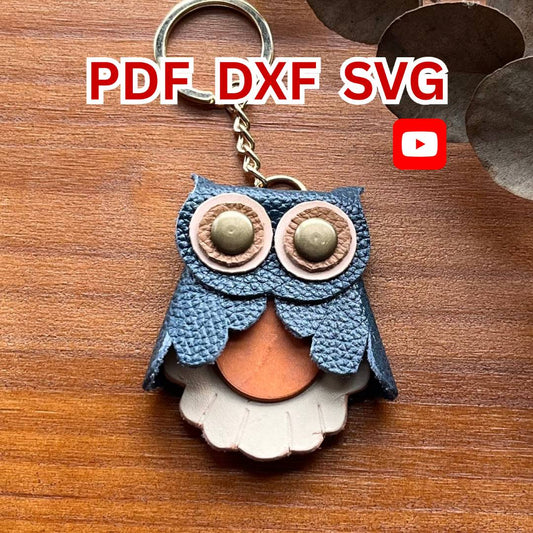 Easy Handmade Animal Keychain - Leather Owl Keychain Pattern | DIY Animal Bag Charm Pdf Svg Dxf | DIY Leathercraft PDF | Small Scrap Leather pattern